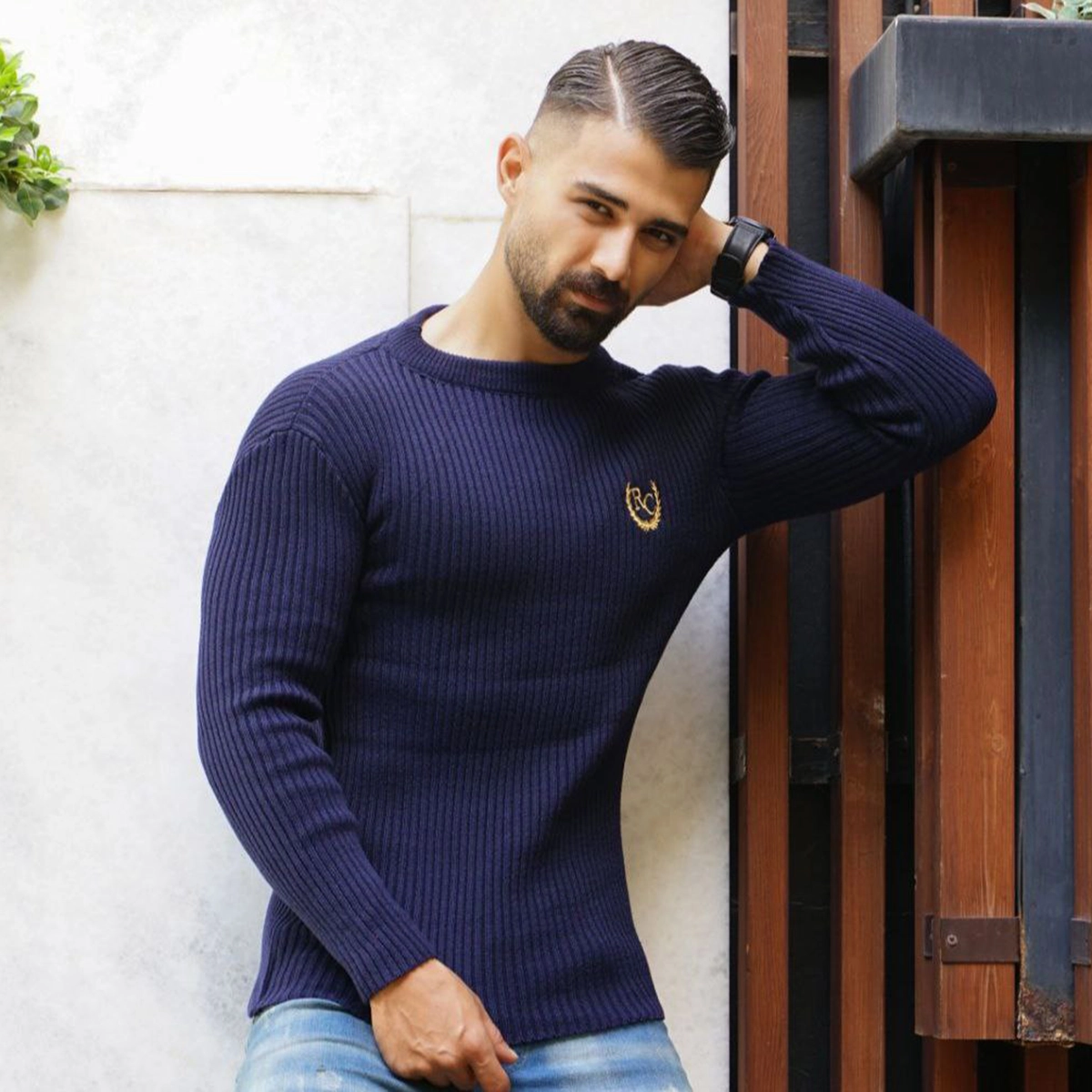 بافت یقه گرد کشبافت کبریتی سرمه ای مدل Rama