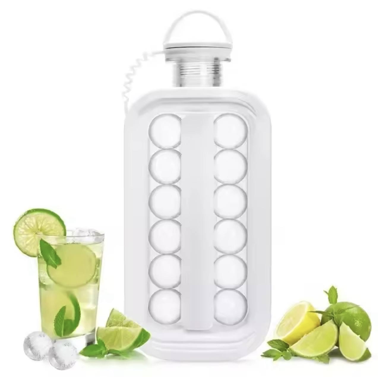 دوکاره (2-in-1): این محصول همزمان نقش یک قمقمه آب و قالب یخ را ایفا می‌کند. کافیست داخل آن آب بریزید، درب را ببندید و در فریزر قرار دهید. پس از چند ساعت، یخ‌های توپی شکل آماده استفاده خواهند بود!
