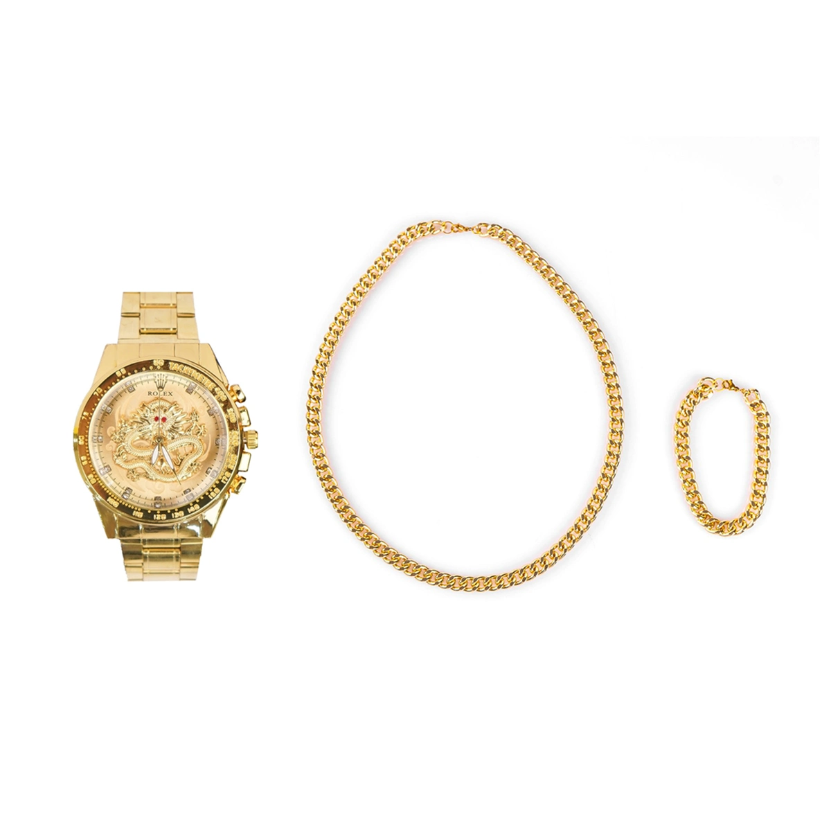 ست ساعت و گردنبند و دستبند طلایی Dragon